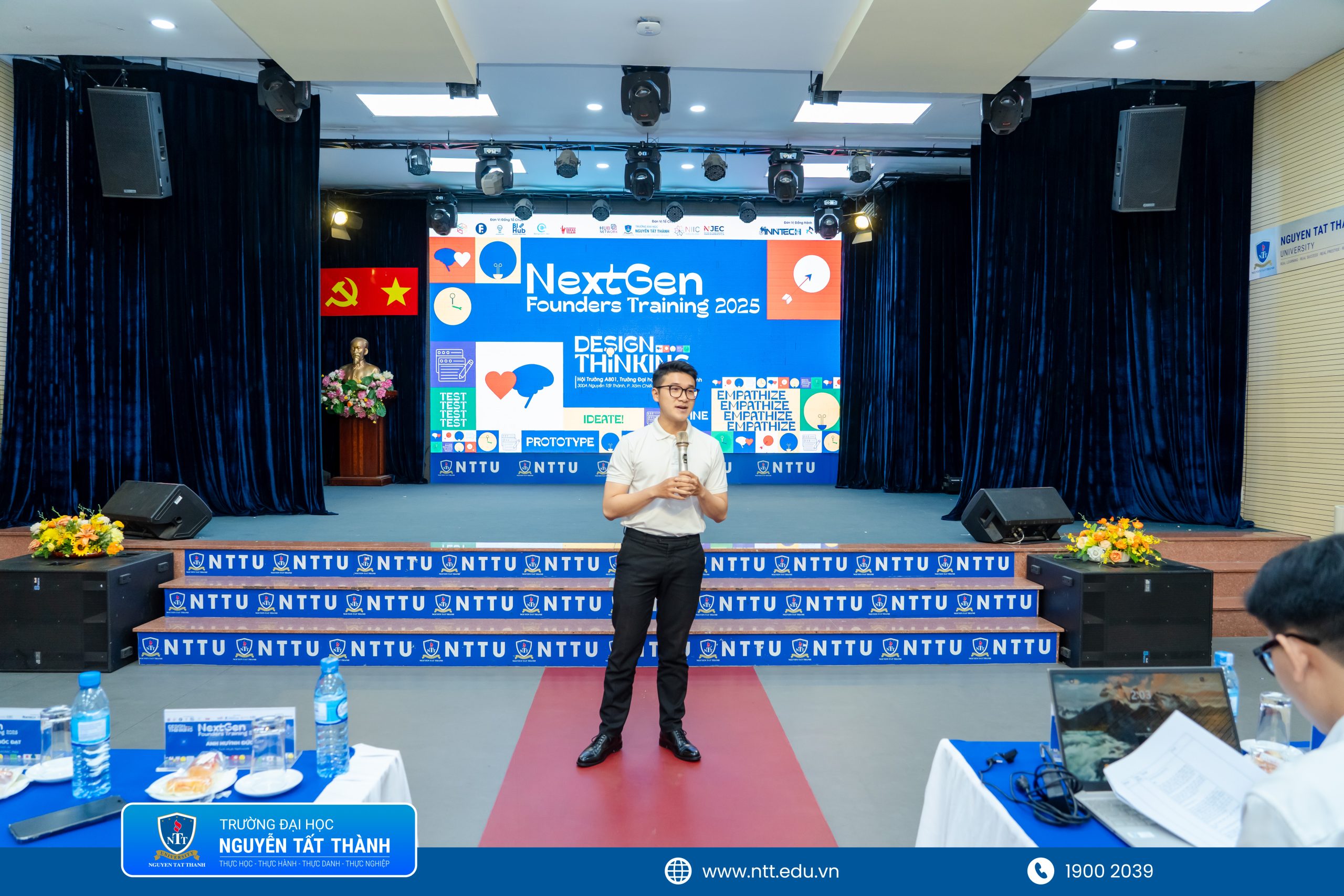 NTTU – Ngày 14/12/2025, tại Hội trường A.801 – Trường Đại học Nguyễn Tất Thành, CLB Nhà Khởi nghiệp Trẻ Trường Đại học Nguyễn Tất Thành (NJEC) trực thuộc Trung tâm Sáng tạo và Ươm tạo Khởi nghiệp đã tổ chức và đăng cai thành công lớp tập huấn “NextGen Founders Training 2025”. Chương trình quy tụ 10 Câu lạc bộ Khởi nghiệp đến từ nhiều trường Đại học tạo nên không gian kết nối, học hỏi và lan tỏa mạnh mẽ tinh thần khởi nghiệp trong cộng đồng sinh viên.