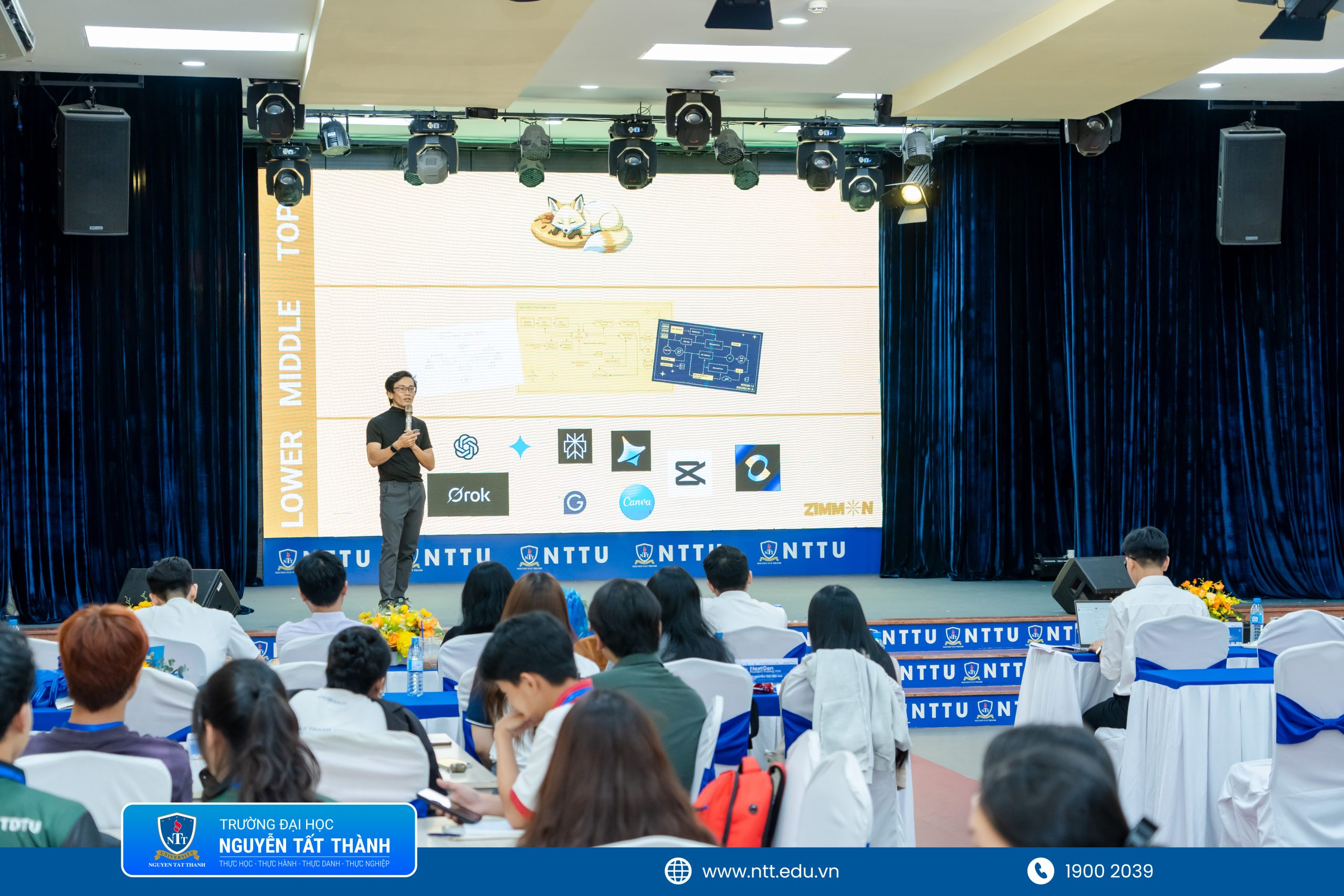 Trong khuôn khổ chương trình, Keynote “Marketing Founder: Chiến lược bứt phá thương hiệu cho Startup trong kỷ nguyên số” do Anh Phạm Lê Quốc Đạt – Founder & CEO Zimmon AI trình bày đã mang đến những chia sẻ chân thực và giàu tính thực tiễn về hành trình khởi nghiệp, tư duy xây dựng thương hiệu, chiến lược marketing dành cho Startup cũng như việc ứng dụng AI trong vận hành doanh nghiệp và tối ưu hiệu quả truyền thông. Đồng hành cùng anh, Chị Yao Huynh – Trưởng bộ phận Sáng tạo & Sản xuất tại Zimmon đã bổ sung các góc nhìn sáng tạo và kinh nghiệm thực tiễn trong lĩnh vực truyền thông – sản xuất nội dung số, giúp sinh viên hiểu rõ hơn cách định vị thương hiệu, tiếp cận khách hàng và phát triển dự án khởi nghiệp trong bối cảnh công nghệ và chuyển đổi số hiện nay.