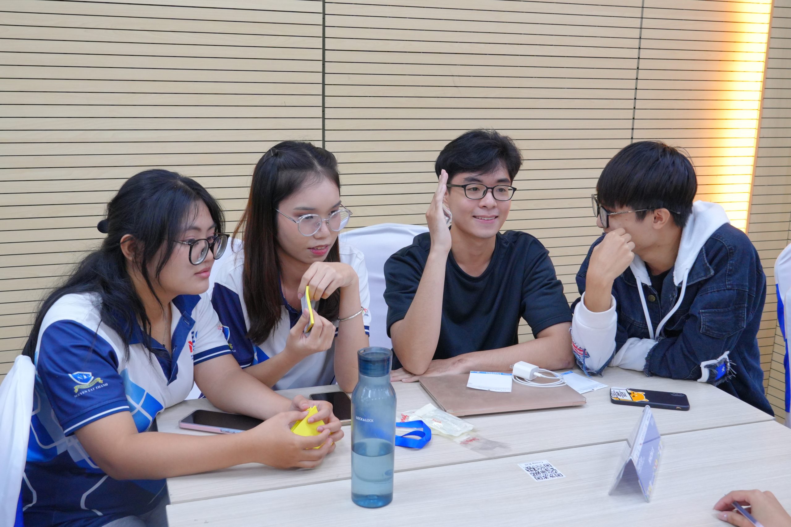 Không khí chương trình trở nên sôi nổi và hào hứng hơn với phần minigame tương tác đến từ đối tác đồng hành WeeUp, xoay quanh các chủ đề Design Thinking, Marketing trong kỷ nguyên số và kiến thức về nền tảng WeeUp. Hoạt động không chỉ giúp sinh viên củng cố nội dung đã học, tăng cường sự tương tác trực tiếp với chương trình, mà còn tạo cơ hội để các bạn nhận những phần quà ý nghĩa từ WeeUp, bao gồm quà tặng hiện vật và cơ hội được góp ý, hoàn thiện CV, qua đó kết nối sinh viên với các cơ hội nghề nghiệp và thực tập trong tương lai.