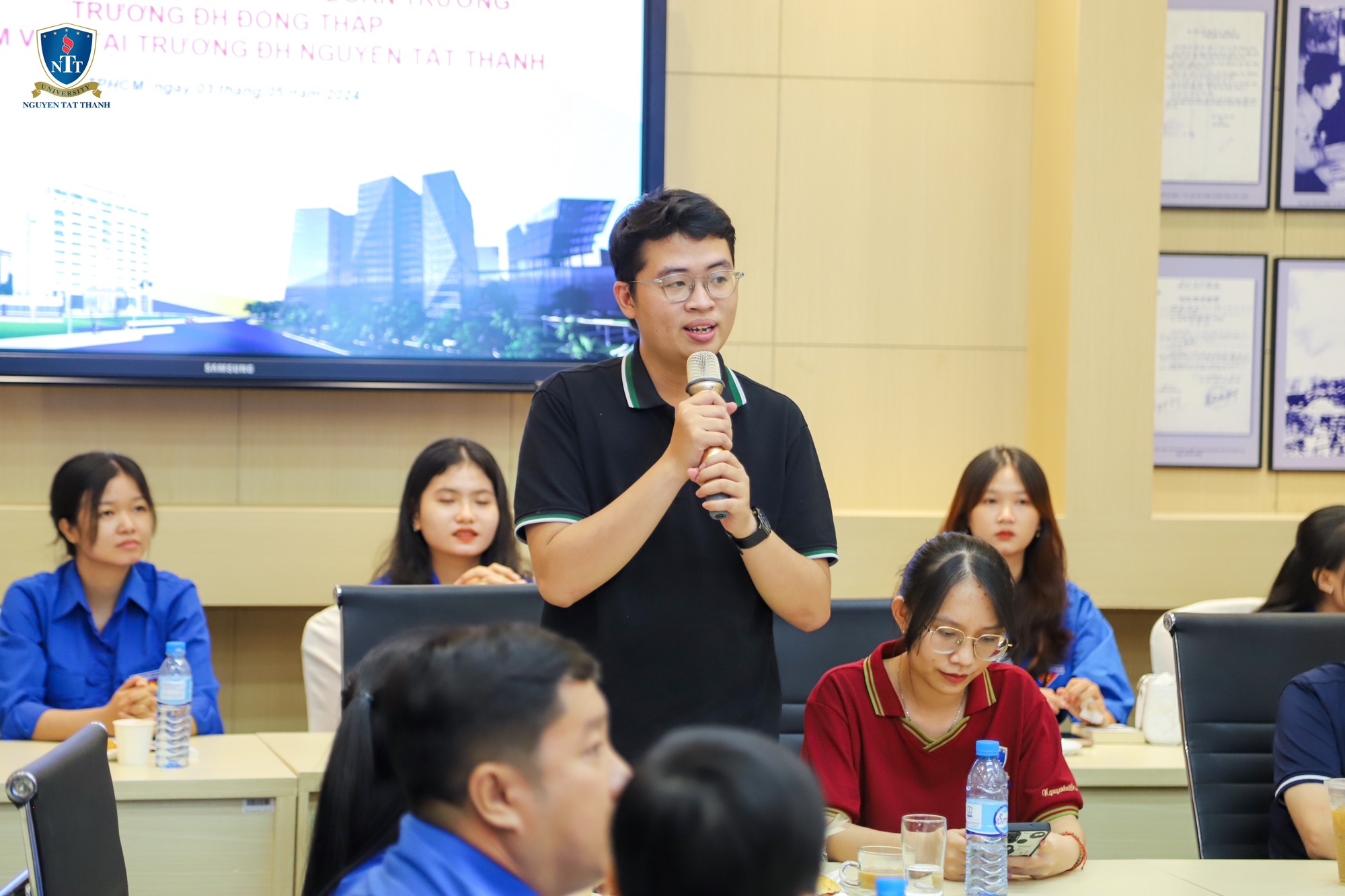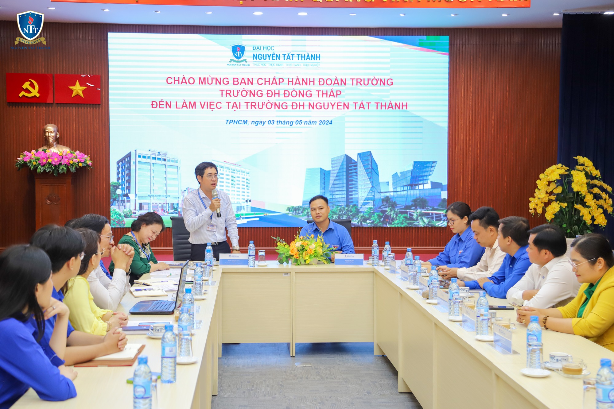 Phát biểu tại buổi làm việc, đại diện Đoàn công tác, Ông Lê Phước Vinh – Bí thư Đoàn Trường, Chủ nhiệm CLB Sinh viên khởi nghiệp đã gửi lời cảm ơn chân thành đến Trường Đại học Nguyễn Tất Thành đã nhiệt tình đón tiếp đoàn, mong muốn sau buổi gặp gỡ với NTTU, Đoàn sẽ có cơ hội được giao lưu, trao đổi, học tập và chia sẻ thêm nhiều kinh nghiệm để xây dựng thành công những mô hình hỗ trợ khởi nghiệp cho sinh viên cũng như Tỉnh nhà.