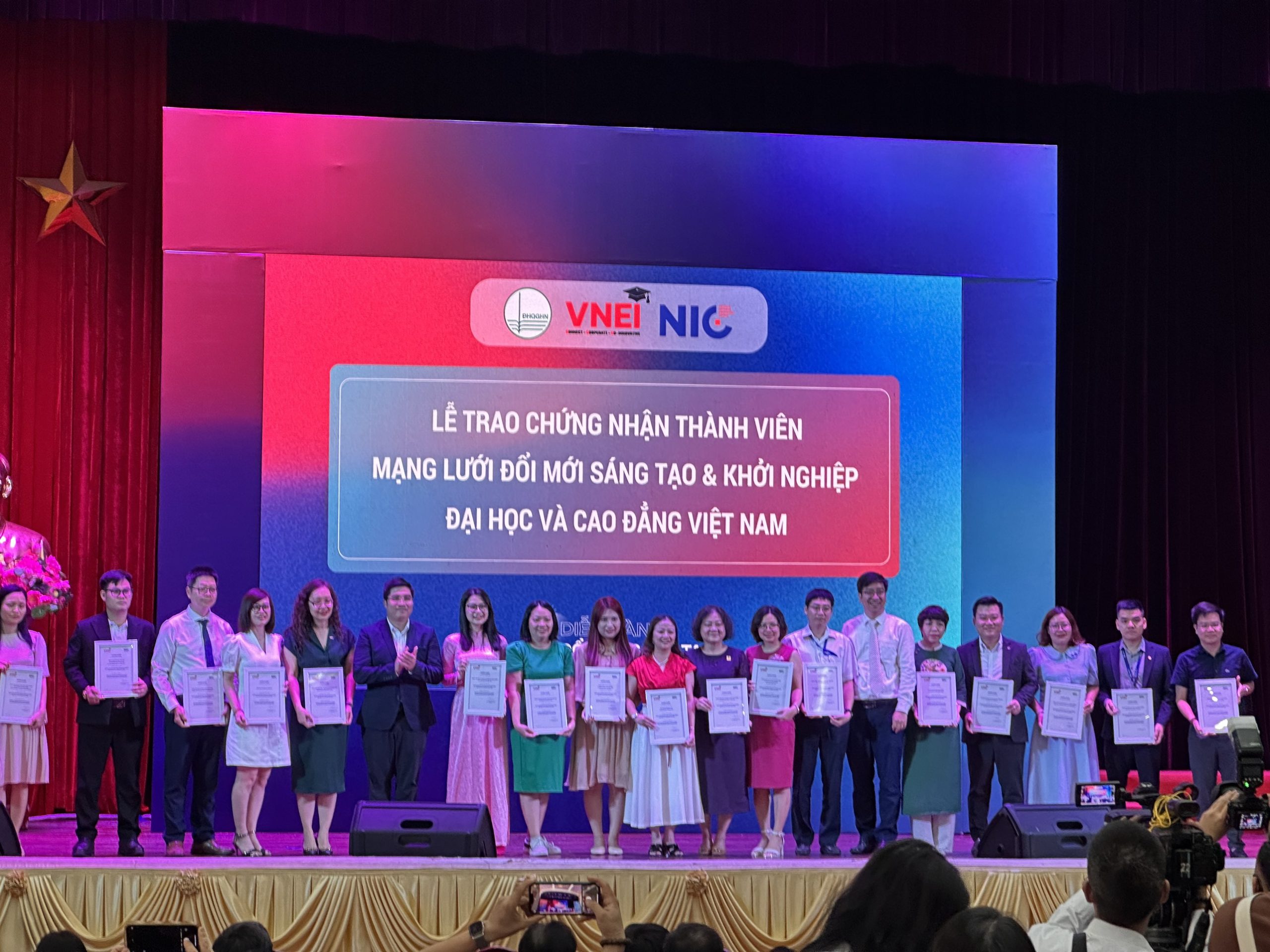Trong khuôn khổ Diễn đàn, ThS. Huỳnh Hồng Mai đại diện Trung tâm Sáng tạo và Ươm tạo Khởi nghiệp nhận giấy chứng nhận thành viên Mạng lưới đổi mới sáng tạo và khởi nghiệp Đại học và Cao đẳng Việt Nam (VNEI). NIIC là thành viên của VNEI trong nhiều năm qua và đã có những đóng góp tích cực vào hoạt động Đổi mới Sáng tạo trong hệ sinh thái Khởi nghiệp Đại học và Cao Đẳng tại Việt Nam.