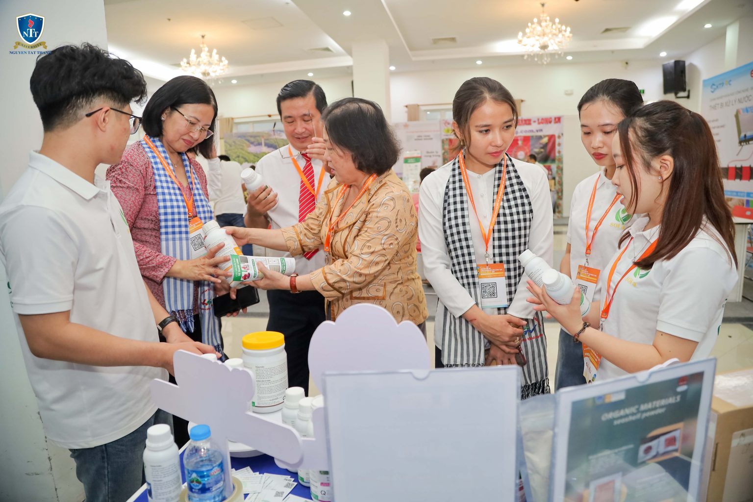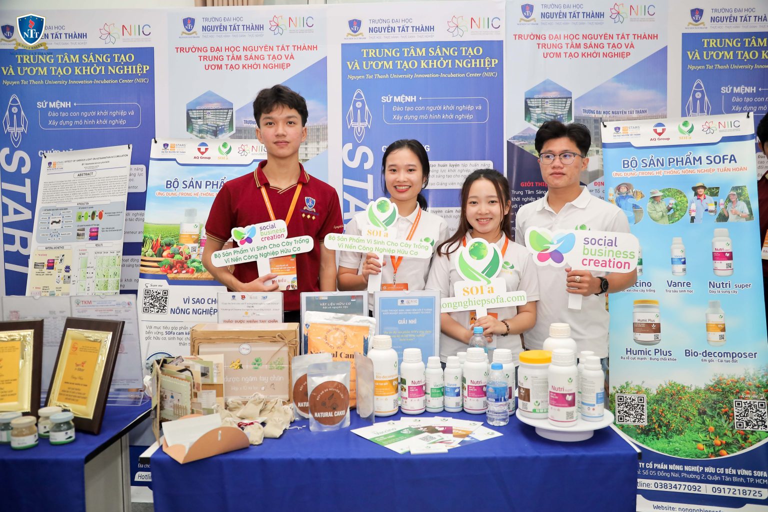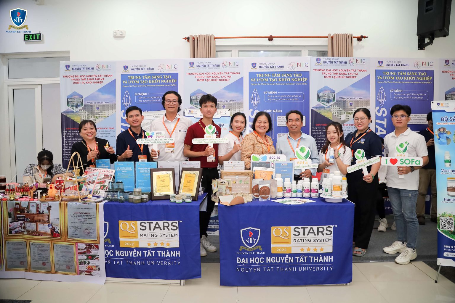 Cũng trong khuôn khổ của sự kiện, Trường ĐH Nguyễn Tất Thành đã tham gia gian hàng triển lãm sản phẩm Khởi nghiệp Đổi mới sáng tạo của sinh viên NTTU như: Bộ sản phẩm SOFa ứng dụng trong hệ thống nông nghiệp tuần hoàn và Sản phẩm ứng dụng ruồi lính đen vào nền nông nghiệp tuần hoàn Fly Bio – Ngành Công nghệ Sinh học; Sản phẩm tinh dầu, sáp thơm, xà phòng, mỹ phẩm và phân bón hữu cơ sản xuất từ ứng dụng vỏ trái cam sau khi lấy nước Q-Green – khoa Dược. Trên đây là 03 là dự án đã đạt giải Nhì tại cuộc thi “Học sinh, sinh viên với Ý tưởng khởi nghiệp” (SV_STARTUP) lần thứ 5 năm 2023. Ngoài ra, gian hàng còn triển lãm sản phẩm Trà tiêu độc Comtido – khoa Dược đã được chuyển giao công nghệ sản xuất thành công với Công ty Life Gift VN; Dự án Son Gấc được ươm tạo tại NIIC đã phát triển thành hộ kinh doanh.