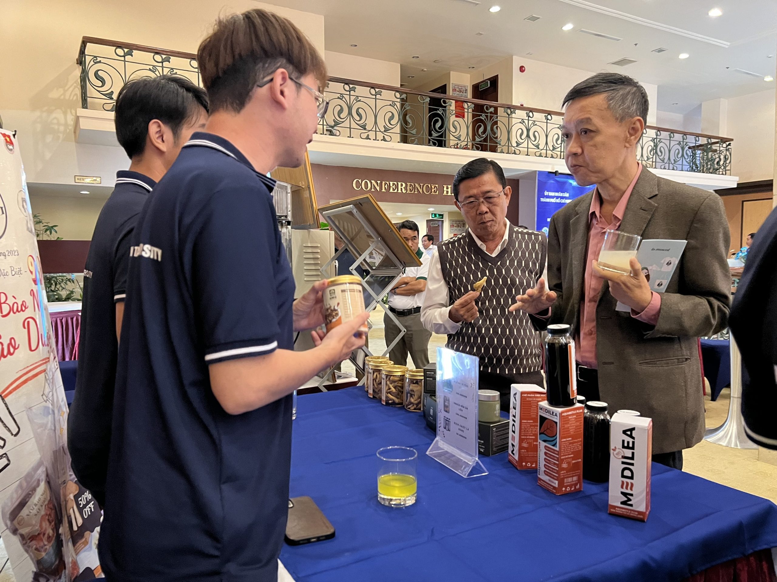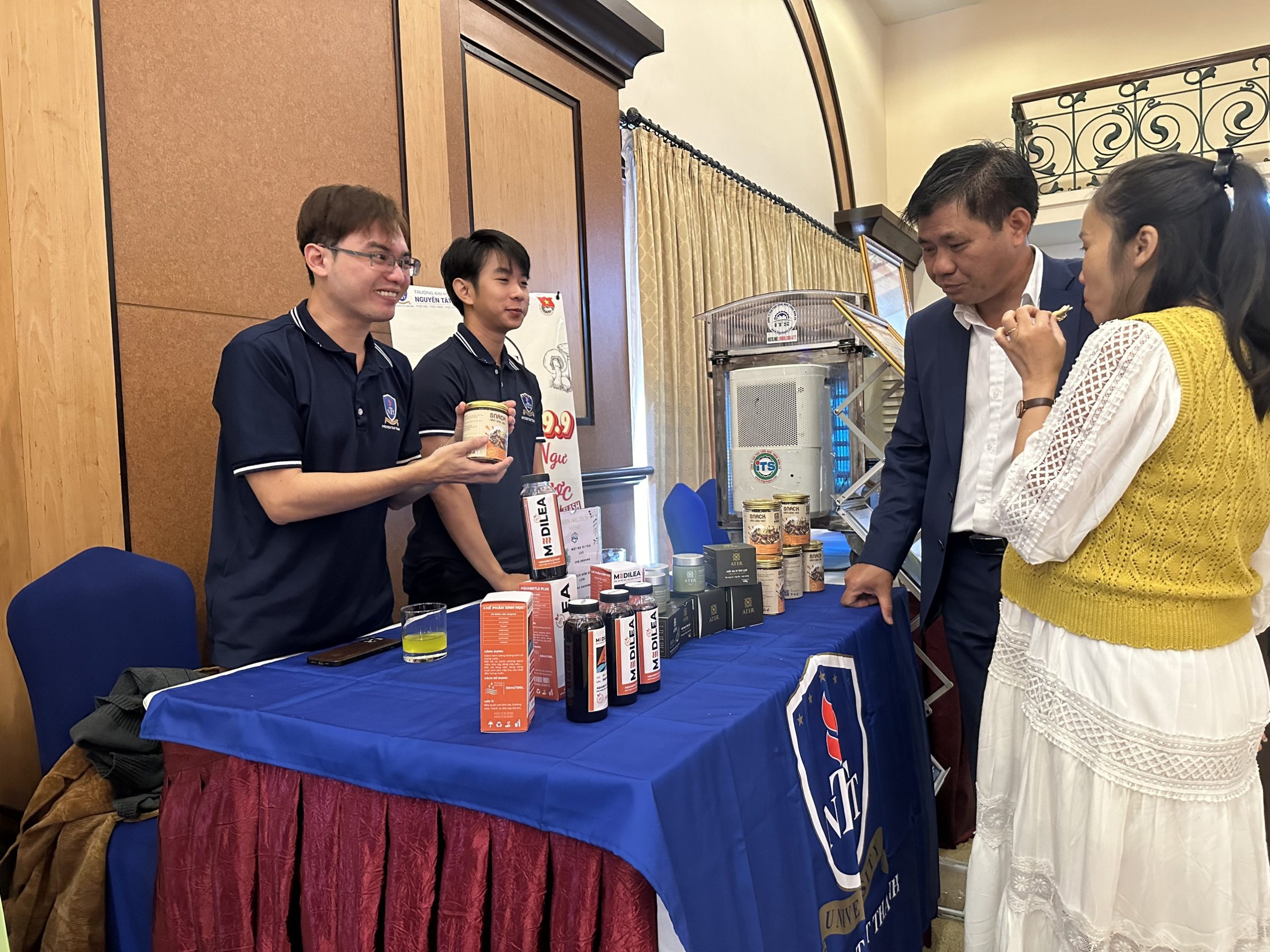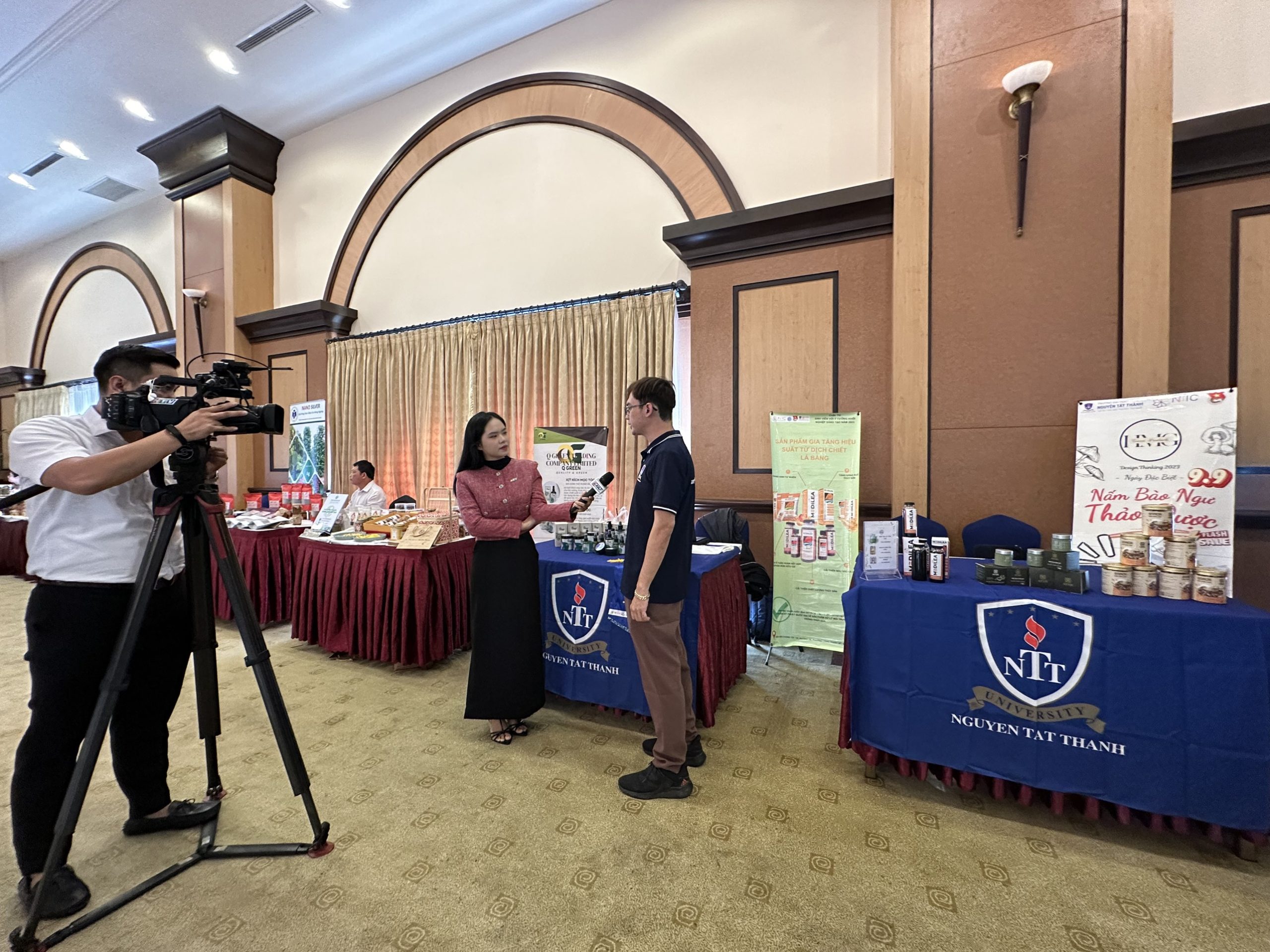 Công ty Agrtech và Q-Green là hai công ty được hỗ trợ và ươm tạo từ Trung tâm Sáng tạo và Ươm tạo khởi nghiệp NTTU. Các sản phẩm hai công ty triển lãm bao gồm: Nấm bào ngư thảo dược, mặt nạ vi tảo lục ATER, dịch chiết lá bàng sử dụng trong thủy sản và nuôi cá cảnh, các sản phẩm chăm sóc tóc. Gian hàng của Trường Đại học Nguyễn Tất Thành thu hút được nhiều đại biểu đến tham quan như ông Võ Văn Hoan – Phó Chủ tịch UBND TPHCM; Bà Lê Thị Bé Ba – Phó Giám đốc Trung tâm Ươm tạo Doanh nghiệp Nông nghiệp Công nghệ cao và đại diện các sở, ban ngành khác…
