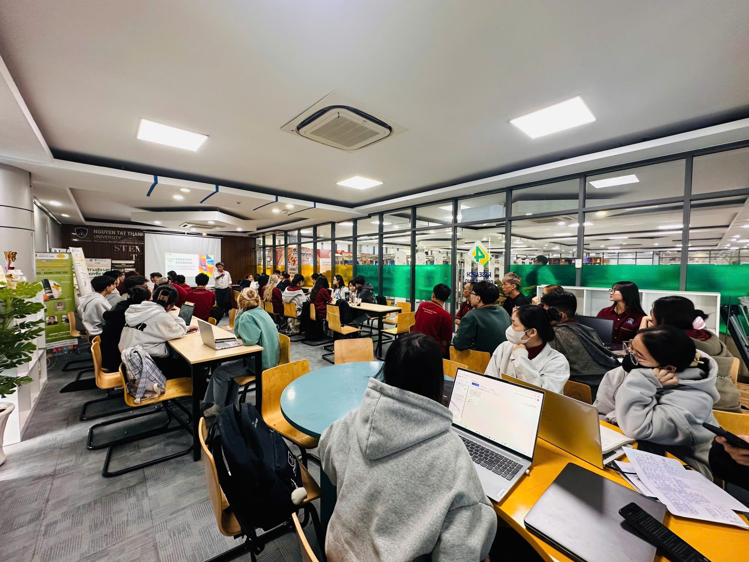NTTU – Sáng ngày 10 tháng 3 năm 2025, tại phòng học Không gian Sáng tạo ở tầng 3 thư viện cơ sở An Phú Đông, Trường Đại học Nguyễn Tất Thành (NTTU), TS. Nguyễn Giang Đô – Phó trưởng khoa Quản trị Kinh doanh kiêm Trưởng ngành Kinh tế Sáng tạo – đã có buổi giao lưu doanh nhân đầy ý nghĩa với sinh viên lớp 24DTD2D thuộc khoa Truyền thông Sáng tạo. Với chủ đề “Giáo dục khởi nghiệp đổi mới sáng tạo: Kinh nghiệm quốc tế và bài học cho Việt Nam”, buổi chia sẻ mang đến những góc nhìn thực tiễn từ chuyên gia, khơi dậy tinh thần khởi nghiệp sáng tạo cho sinh viên.